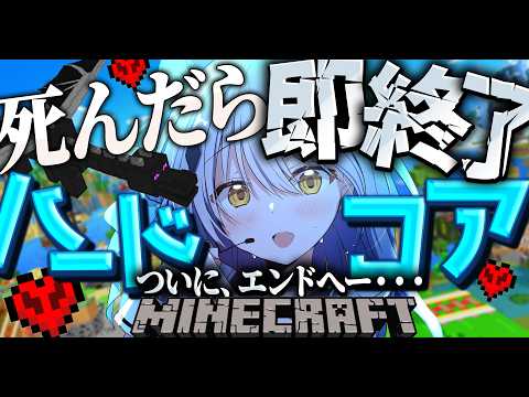 4時間11分台、炉なるは初めてソロでエンドに入ると告げてポータルへ向かった。入った直後は景色に反応するが、足場が離れていること、羽音が聞こえること、周囲が見えにくいことですぐ声が忙しくなる。続けて被弾し、「死ぬ」と慌てたあと、次回のハードコアでのエンダードラゴン攻略へつなげる締めになった。