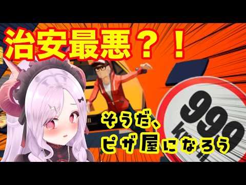 5分台の説明では「ただただピザを届けるだけのゲーム」と置いていたが、6分台には「戦場だよ」と受け止めが変わる。8分台から10分台にかけては、ジャンプやカメラを確かめる前に敵が寄ってきて、「怖い」「操作がやばい」と短い反応が続いた。説明を読んでから慎重に進むというより、まず街に投げ出され、動きながらルールを覚えていく形だ。